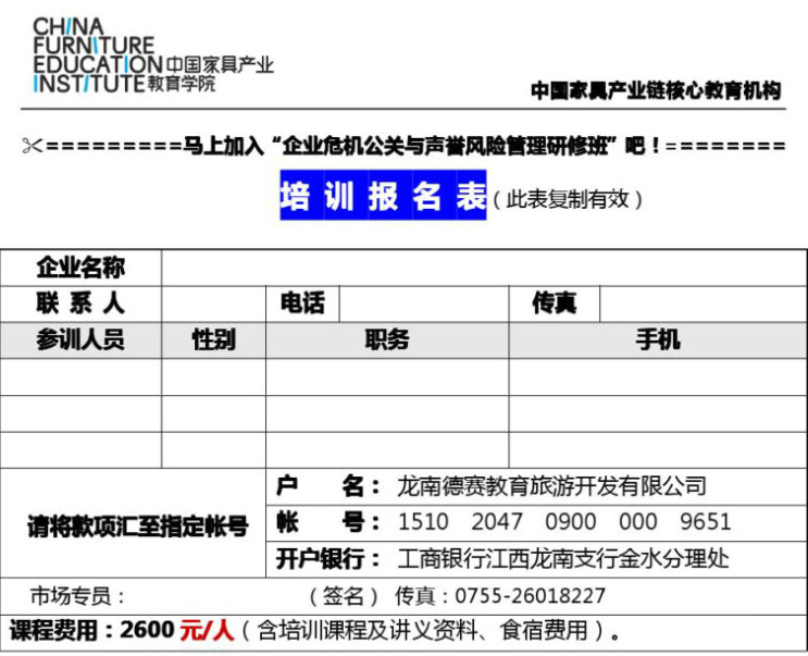 【培訓地址】: 江西贛州龍南 中國家具產(chǎn)業(yè)教育學院