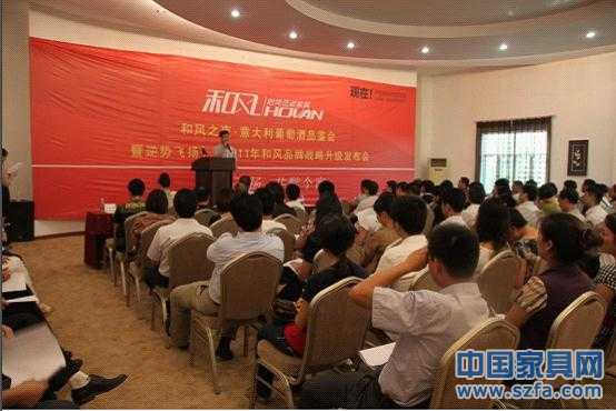 9月3日,和風(fēng)家具舉行了2011年和風(fēng)品牌戰(zhàn)略升級發(fā)布會,來自全國各地的經(jīng)銷商、賣場代表、各大主流媒體及廣東省家具商會的領(lǐng)導(dǎo)出席了活動。