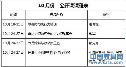 金秋十月,江西龍南中國(guó)家具產(chǎn)業(yè)教育學(xué)院2011年10月公開(kāi)課將在十月下旬正式開(kāi)課,歡迎瀏覽www.ifec.net.cn/?action-category-catid-30,了解課程報(bào)名詳情及報(bào)名優(yōu)惠套餐。