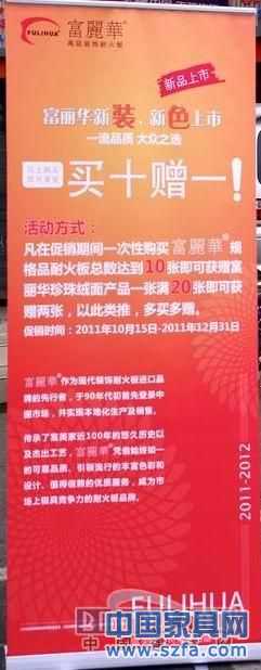 針對(duì)本次新裝、新色上市活動(dòng),富麗華還推出了優(yōu)惠活動(dòng),在促銷(xiāo)期間(2011年10月15日--2011年12月31日),凡一次性購(gòu)買(mǎi)富麗華規(guī)格品耐火板總數(shù)達(dá)到10張,即可獲贈(zèng)富麗華珍珠絨面產(chǎn)品1張。促銷(xiāo)活動(dòng)詳情敬請(qǐng)咨詢?nèi)珖?guó)各地富麗華高級(jí)裝飾耐火板經(jīng)銷(xiāo)商