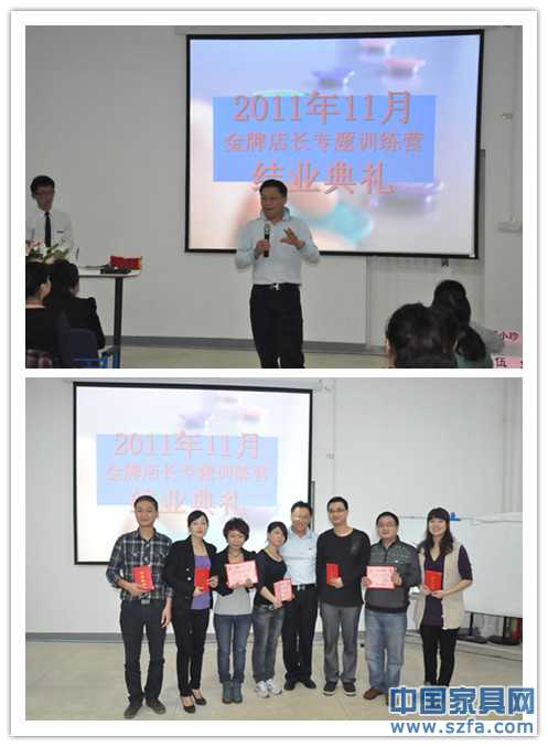 17日晚上的店長班的結(jié)業(yè)典禮神秘嘉賓現(xiàn)身,深圳市家具行業(yè)協(xié)會侯克鵬秘書長親臨現(xiàn)場,為優(yōu)秀團隊頒獎以及為學員頒發(fā)了結(jié)業(yè)證書,結(jié)業(yè)典禮之后侯秘書長更與學員們一起聯(lián)歡。