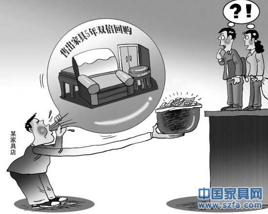 日前,天津市某門戶網(wǎng)站上,一位網(wǎng)友發(fā)帖子稱:“對于每個(gè)家庭來說,家具算是大宗必需品,然而,在年初‘達(dá)芬奇’事件發(fā)生以后,家具行業(yè)面臨著信任危機(jī)。天津市河西區(qū)紅星美凱龍商場‘原木尚品家具’最近作出承諾,稱售出的榆木家具5年后雙倍價(jià)回購……家具用5年,還能以雙倍價(jià)賣出,真有這樣的好事?”很多消費(fèi)者回帖質(zhì)疑,這里面有沒有欺詐?是否存在消費(fèi)陷阱?記者就此進(jìn)行了調(diào)查。