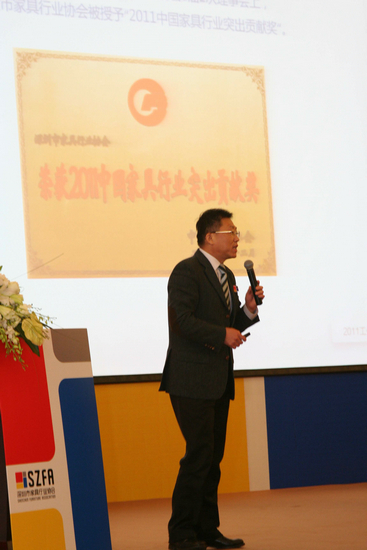 2011年我們有兩項榮譽值得在這里陳述一下,一個就是剛剛獲得的“中國家具行業(yè)2011年突出貢獻獎”,這個榮譽是中國家具協(xié)會在中國家具協(xié)會五屆二次會議上,由黃華坤常務副會長代表協(xié)會,從朱長嶺理事長手中接過這個牌子。能夠獲得這個榮譽的協(xié)會家具行業(yè)獨此一家。同時,我們也獲得了第二個榮譽是“中國家具產(chǎn)業(yè)教育學院”正式獲得國家頒牌,由朱長嶺理事長親自頒給黃偉業(yè)會長,由國家輕工總會部鑒發(fā)證,中國從此有了國家級的家具產(chǎn)業(yè)教育學院,這個學院屬于我們深圳家具協(xié)會。曾幾何時,行業(yè)中很多老板們都夢想有一個自己的教育學院,我們這個行業(yè)不缺高等教育,我們?nèi)钡氖锹殬I(yè)教育和再教育。我們改革開放三十年我們沒有做到,只有這個協(xié)會的努力我們在5年前開始建設,2年前開始正式投入運營。也是基于我們在中國家具行業(yè)做出了較多的突出貢獻,所以我們贏得了“突出貢獻獎”。