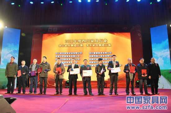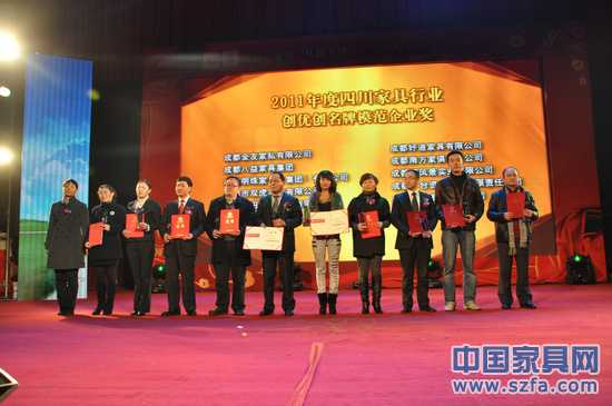 為了大力實(shí)施品牌戰(zhàn)略促進(jìn)四川家具產(chǎn)業(yè)又好又快的發(fā)展,努力實(shí)現(xiàn)“四川家省具產(chǎn)業(yè)十二五規(guī)劃”所確定的目標(biāo)和任務(wù),四川省家具行業(yè)商會(huì)于2011年10月至2011年12月期間,特舉辦了“四川省家具行業(yè)2011年度品牌評(píng)選”活動(dòng)?,F(xiàn)場(chǎng)頒發(fā)了了2011年度四川家具綜合實(shí)力十強(qiáng)品牌、2011年度四川家具軟體五強(qiáng)品牌、2011年度四川家具辦公五強(qiáng)品牌、2011年度四川家具原創(chuàng)研發(fā)設(shè)計(jì)五強(qiáng)品牌、2011年度四川家具行業(yè)優(yōu)秀代理商、2011年度四川家具誠(chéng)信材料供應(yīng)商、2011年度四川家具創(chuàng)優(yōu)創(chuàng)品牌模范企業(yè)獎(jiǎng)等各項(xiàng)獎(jiǎng)項(xiàng)。