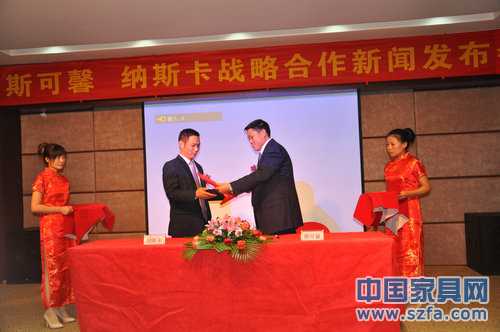 2012年1月11日,作為江蘇家具行業(yè)最具規(guī)模和創(chuàng)新力家具企業(yè)江蘇斯可馨家具股份有限公司正式牽手蘇州第二大沙發(fā)品牌納斯卡,實現(xiàn)優(yōu)勢互補、強強聯(lián)合,共同打造中國軟體家具布藝沙發(fā)第一品牌。