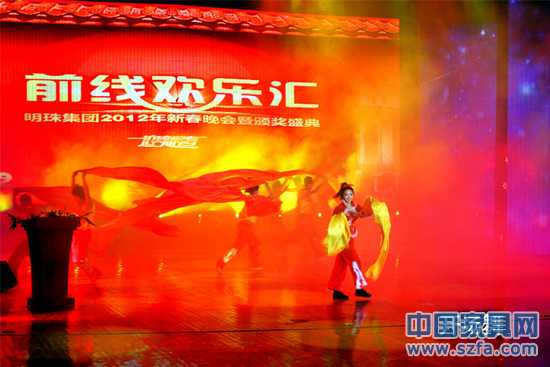 2012年1月18日下午2點(diǎn),掌上明珠家具2012年新春晚會(huì)暨頒獎(jiǎng)盛典 “前線歡樂匯”在成都市崇州藝術(shù)中心劇場(chǎng)精彩上演。全體后勤員工、2011年年度先進(jìn)人物以及市場(chǎng)一線人員家屬歡聚一堂,一千余人共迎新春佳節(jié)。整臺(tái)晚會(huì)由精心構(gòu)思的節(jié)目和現(xiàn)場(chǎng)頒獎(jiǎng)組成,或輕松或感人的視頻穿插其中,構(gòu)思精巧,氣氛熱烈,洋溢著濃濃的激情與無限歡樂。