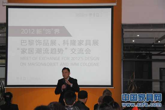 2月10日下午14:30~17:30,由深圳市家具行業(yè)協(xié)會主辦的2012年巴黎春季時尚家居飾品展及2012年德國科隆國際家具展交流分享會隆重召開,會議流程包括巴黎展和科隆展簡介、精彩展品圖片分享、家居飾品及陳設(shè)潮流走勢預(yù)測、紅酒品鑒等環(huán)節(jié),主講為《深圳家飾》主編嚴(yán)偉群女士。