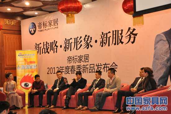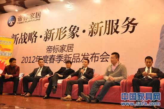 2012年02月10日,帝標(biāo)家居2012年春季新品發(fā)布會在成都金牛山莊舉行。同時,帝標(biāo)家居還特別邀請了成都市商務(wù)副局長川曾洪揚、成都市貿(mào)易促進委員會方雷、家具出口商會秘書長榮煜偉 、香江全球家居CBD總經(jīng)理莫志貴、成都好百年管理有限公司副總經(jīng)理陳偉新、搜狐電商總監(jiān)丁永興等參加經(jīng)銷商終端突圍論壇。