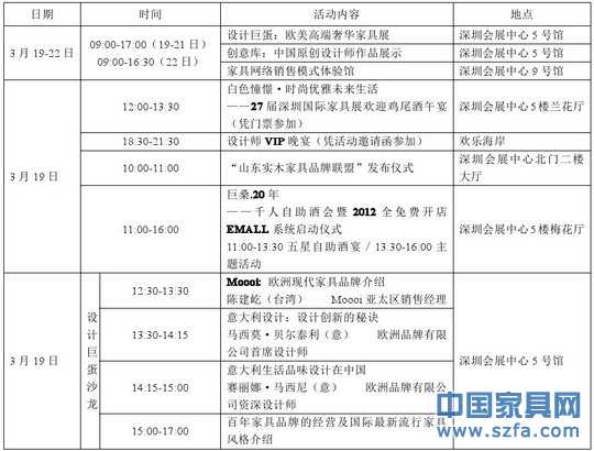 核心提示:2012年第27屆深圳國際家具展展會活動安排