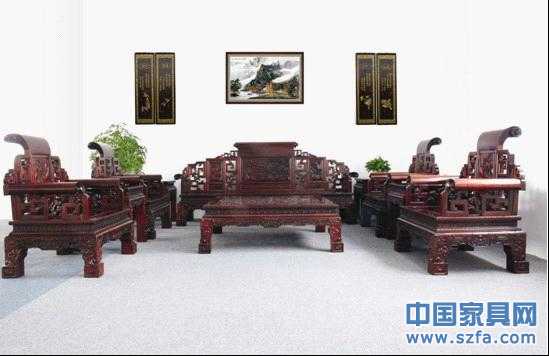 不止是在風(fēng)格上,即使是在圖騰雕琢上,也相當(dāng)講究。比如整套沙發(fā)靠背中雕松鶴圖,取松鶴延年、吉祥富貴的寓意。并且,沙發(fā)大方茶幾改變了傳統(tǒng)獨(dú)面框架結(jié)構(gòu),面中嵌正方菱形透空拐子紋花格。使寬大平素的幾面變的玲瓏典雅許多。這也是整套家具中的一大亮點(diǎn)。另外,據(jù)《韓非子》一書(shū)考曰:“全、壽、富、貴之謂福。”“福”包括五個(gè)方面,俗稱(chēng)五福;一曰壽,二曰富;三曰康寧,四曰攸好德,五曰考終命。”而“悠然客廳”顯現(xiàn)給大家的是一種福星的寄托,購(gòu)買(mǎi)收藏者即是納福之舉。