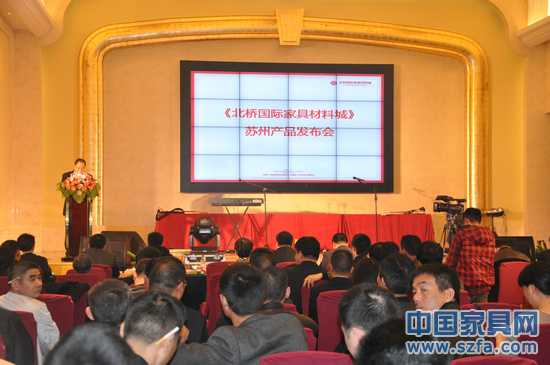 2012年3月30日上午,北橋國際家具材料城蘇州產(chǎn)品發(fā)布會暨戰(zhàn)略簽約儀式在蘇州相城區(qū)白金漢爵大酒店四樓會議室盛大舉行。蘇州家具協(xié)會秘書長倪國良、蠡口家具協(xié)會秘書長顧建中、蘇州潤祥泰和實業(yè)有限公司董事長胡衛(wèi)東、總經(jīng)理褚天貝及蘇州相城區(qū)工商銀行相關(guān)領(lǐng)導(dǎo)、全國各地家具原材料企業(yè)負責(zé)人等出席此次發(fā)布會。