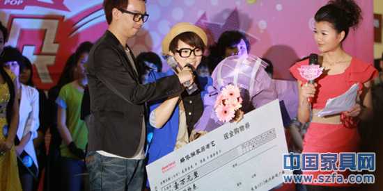 給冠軍李美姿頒發(fā)由蝶依斕家居布藝贊助的萬元大獎
