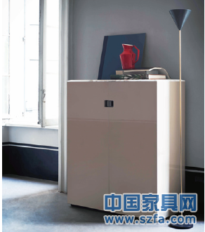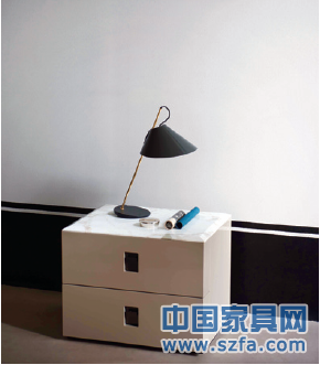 Flexform旗下的mood品牌推出的RAFEL系列柜體,均將頂部面板材料換成大理石,雖然這個床頭柜整體呈卡其色和白色的調(diào)和色,但頂部大理石面板的斜角處理使得頂板顯得更加出挑,整個柜體也顯得不再封閉。大理石的冰冷感和柜體亮光的冰冷感相一致,而賦予卡其色后又拉近了產(chǎn)品與人的距離。