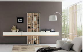 Hülsta的另一款SIMIA電視柜借助開放式柜體的優(yōu)勢,把淺色木紋板置于底板位置,讓木紋成為墻面的自然裝飾,同時四盞LED燈將層玻和底板照亮,體現(xiàn)了自然風格。