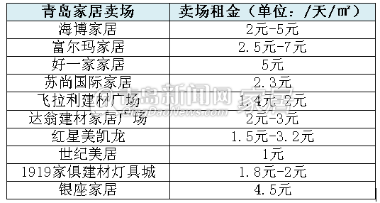 青島部分家居賣場(chǎng)租金一覽(數(shù)據(jù)僅供參考,具體請(qǐng)以賣場(chǎng)實(shí)際價(jià)格為準(zhǔn))