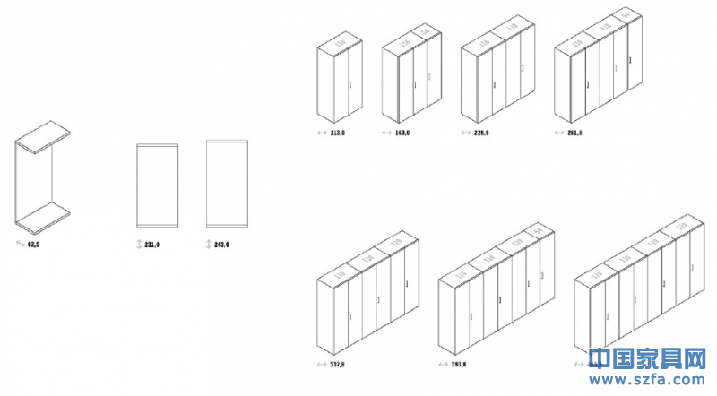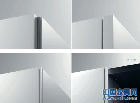 Interlubke的柜類系統(tǒng)里,層板,背板,側(cè)面板都有不同的規(guī)格尺寸變化,面板端部的處理方式也有多種,齊平式,轉(zhuǎn)角折線式及前擋條式。