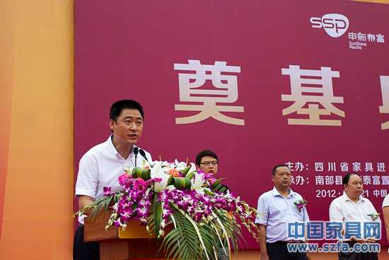 炎炎盛夏,在這個(gè)如火的七月,我們迎來(lái)了四川品牌家居直銷(xiāo)中心暨申新泰富·國(guó)際家居博覽中心正式啟動(dòng)的喜慶日子,出席今天奠基典禮的有四川省商務(wù)廳、南充市人民政府、南充市商務(wù)局、南部縣委、縣政府的相關(guān)領(lǐng)導(dǎo),以及四川家具界的各位同仁和新聞媒體的朋友們,值此開(kāi)工奠基之際,請(qǐng)?jiān)试S我代表四川省家具進(jìn)出口商會(huì)和南部縣申新泰富置業(yè)有限公司向一直以來(lái)關(guān)心、支持四川品牌家居直銷(xiāo)中心開(kāi)發(fā)、建設(shè)的各位領(lǐng)導(dǎo)和各界朋友表示熱烈的歡迎和衷心的感謝!