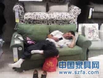 昨天下午,記者走訪(fǎng)了漕溪北路上的宜家商場(chǎng),沙發(fā)和臥具區(qū)都存在網(wǎng)友描述的現(xiàn)象。沙發(fā)區(qū)內(nèi),三四人或坐或躺,其中還有兩名顧客脫了鞋,橫躺在沙發(fā)上。臥具區(qū)內(nèi),顧客睡覺(jué)現(xiàn)象更為嚴(yán)重,從兒童到老人,似乎都抗拒不了柔軟的床帶來(lái)的誘惑。記者剛到場(chǎng)時(shí),就發(fā)現(xiàn)一名老人守著孩子睡在一張床上。一旁想買(mǎi)床的顧客只能望而卻步。