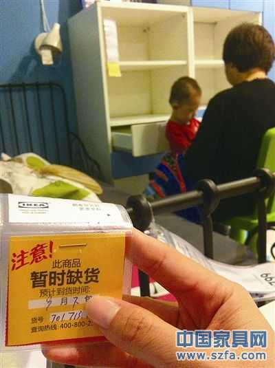 圖為舊國(guó)標(biāo)家具被掛上“暫時(shí)缺貨”的牌子,停止出售