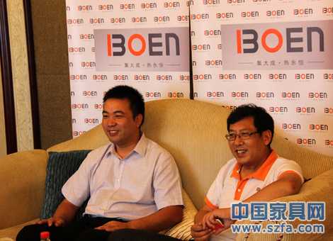 伯恩太陽(yáng)能科技有限公司副董事長(zhǎng)總經(jīng)理劉至國(guó)(左一)與董事常務(wù)副總經(jīng)理王剛(右一)