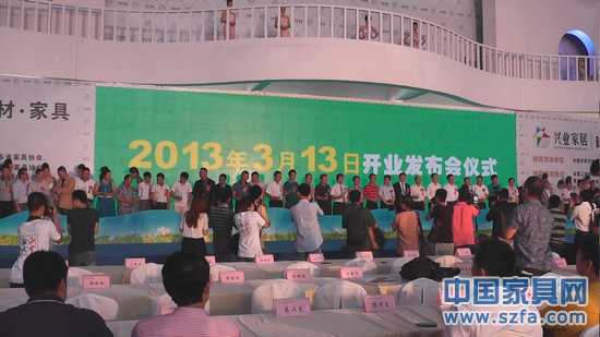 上午11點,活動正式開始,東莞市厚街鎮(zhèn)政府副鎮(zhèn)長方活力先生、全國工商聯(lián)家具裝飾業(yè)商會執(zhí)行會長張傳喜、中國家具協(xié)會副理事長陳寶光、興業(yè)家居董事總經(jīng)理梁勁松分別發(fā)表重要講話!參會的政府領導、30多家各地家具協(xié)會、相關協(xié)會共計40多位領導共同參與了興業(yè)家居“2013年3月13日開業(yè)發(fā)布會儀式”,宣告著興業(yè)家居項目將正式進入開業(yè)運營倒計時。