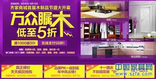 目前電商市場(chǎng)低價(jià)口號(hào)滿天飛,在經(jīng)歷了大大小小的價(jià)格戰(zhàn)后,我們不禁懷疑疲于比價(jià)的消費(fèi)者還能再度承受眾多電商各式促銷的折騰嗎?帶著這個(gè)疑問,小編從齊家商城總經(jīng)理俞麗萍女士處了解到:齊家網(wǎng)首屆木制品節(jié)匯聚了百余家國(guó)內(nèi)外知名一線家裝品牌,平時(shí)在市場(chǎng)上很少降價(jià)銷售的品牌,如書香門地美學(xué)地板、大自然地板、索菲亞移門衣柜、尚品宅配、金牌櫥柜、志邦櫥柜、福佑櫥柜、美森耐木門、王牌木門等商戶此次也拿出了超低價(jià)格回饋齊家網(wǎng)用戶,可以說是一線品牌集中讓利于本屆木制品節(jié)!同時(shí)在服務(wù)上,本次活動(dòng)在7月櫥柜節(jié)的基礎(chǔ)上進(jìn)行了的升級(jí),如免費(fèi)上門測(cè)量出圖紙出報(bào)價(jià)等(部分地區(qū)需視具體情況),同時(shí)地板類更提供了免費(fèi)郵寄小樣的超值服務(wù),避免由于色差問題引起的遺憾,所以說齊家網(wǎng)的“價(jià)格戰(zhàn)”是以完善的服務(wù)為基礎(chǔ)的。(一般家居建材市場(chǎng)購(gòu)買木質(zhì)產(chǎn)品上門測(cè)量是需要收取100-200不等的測(cè)量費(fèi)用,地板類產(chǎn)品更是需要自己到現(xiàn)場(chǎng)看樣,購(gòu)買后發(fā)現(xiàn)顏色與家裝顏色不搭等問題時(shí)有發(fā)生)。