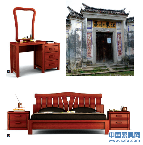 現(xiàn)代實木家具設計中搖擺不定的窘境讓我們家具設計師們開始思考,怎樣才能引領時代設計?經過歷史沉淀的多元化文化或許可以給我們新的啟示。明式家具縱然會給家具文化設計提供常足的養(yǎng)分,其他傳統(tǒng)文化如建筑藝術、陶瓷藝術、剪紙藝術、木雕藝術、服裝藝術等也均是我們設計的嵌入點,能擊中人們內心的美好事物往往是相通的,文化本身的多元會給設計帶來無窮的創(chuàng)意?,F(xiàn)在我們常說跨界設計,將各種文化創(chuàng)意解構重組。家具設計中的跨界吸取文化精華,不少企業(yè)已開始舉步嘗試。江西文華家瑞攜手深圳拓璞家具設計有限公司推出福瑞系列,吸取了江西圍屋建筑的一些經典元素,應用在家具設計當中。例如:建筑門窗上的回紋、萬字紋雕刻等等注入家具中,回紋,它是由古代陶器和青銅器上的雷紋衍化來的幾何紋樣,由于這種圖案整齊劃一而且綿延豐富,后世便賦予它諸事深遠、綿長的意思,作為一種吉祥的象征,使家具賦予了一定的客家文化內涵底蘊。此外宏偉的客家圍屋建筑融合了防御、美觀,作為客家文化的承載中心,產品表達上便吸取了客家的建筑形式、建筑線條、水形馬背頂?shù)冉浀湓兀矛F(xiàn)代的設計手法,充分體現(xiàn)客家人的精神、文化。
