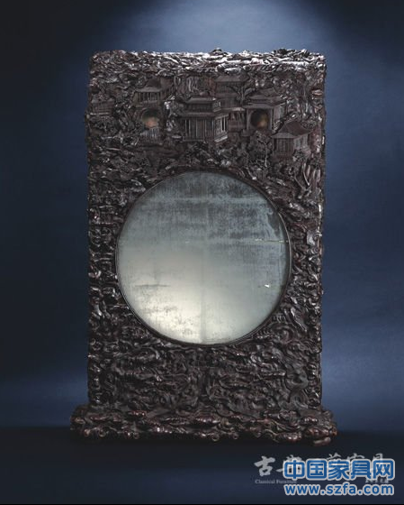 TOP3:清乾隆沉香雕仙山樓閣嵌西洋鏡座屏