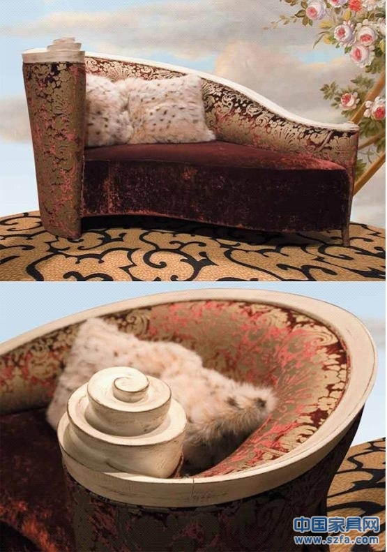 埃奇奧·拜洛迪將家具與藝術(shù)拿捏的相當出色,任何生活中的事物都可以是家具的設(shè)計靈感源泉。動物皮毛可以成為靠墊的設(shè)計,拉開的卷紙也可以用于貴妃榻的造型。它將女性的浪漫氣息寄托于現(xiàn)實,點燃了她們對美好的向往。