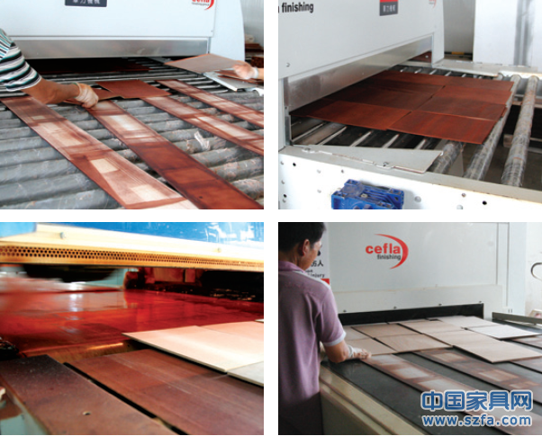 走進(jìn)興利尊典的涂裝車間,耳旁是接連不斷的機(jī)器轟鳴聲,一條自動(dòng)傳送帶前,兩名工人正熟練地往上排列亟待噴涂的板材,10分鐘后,這些板材就會(huì)完成噴涂、打磨和烘干的一整套程序,可以進(jìn)行組裝并包裝了。這是興利從意大利進(jìn)口的UV漆輥涂生產(chǎn)線。在不遠(yuǎn)處,一個(gè)全封閉的單獨(dú)的房間內(nèi)放置的是另一條意大利進(jìn)口的自動(dòng)噴涂線,這條線可以完成水性漆、UV漆和PU漆三種涂料的自動(dòng)噴涂,透過(guò)噴涂室的玻璃可以看到八個(gè)噴槍正來(lái)回作業(yè)。這條線于去年年底開始設(shè)備調(diào)試,今年年初正式投產(chǎn)。據(jù)興利尊典執(zhí)行董事蘇毅介紹,工廠配備這兩條生產(chǎn)線在國(guó)際上都屬最先進(jìn)的,投資總額超過(guò)了1500萬(wàn),目前啟用這條自動(dòng)噴涂線的企業(yè),國(guó)內(nèi)只有兩家,一家位于東莞,是為宜家做配套的出口企業(yè),而做內(nèi)銷的國(guó)內(nèi)只有興利。