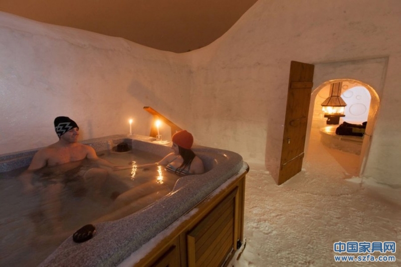 為了吸引更多游客,瑞典、挪威、加拿大等國紛紛推出了冰酒店。冰酒店并不是大號版圓頂冰屋那么簡單,而是建造者的精雕細(xì)琢之作,同時還為游客提供世界級的服務(wù),例如自助早餐、桑拿浴、觀賞北極光和體驗狗拉雪橇,讓他們度過一個難忘的假期??笨吮频甑母叨颂追?,備有桑拿浴和熱水浴缸。