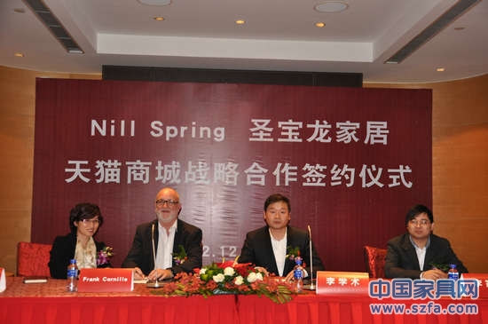 2012年12月2日,美麗的金雞湖畔,來自比利時(shí)的知名床墊品牌Nill Spring正式牽手蘇州圣寶龍家居。下午兩點(diǎn),Nill Spring床墊 CEO Frank Cornille先生,Nill Spring中國(guó)區(qū)總裁王云華女士,圣寶龍家居總經(jīng)理李學(xué)術(shù)先生,ECF華東家具董事長(zhǎng)李家網(wǎng)先生出席Nill Spring床墊、圣寶龍家居天貓商城戰(zhàn)略合作簽約儀式。華東家具雜志、深圳家具報(bào)、新浪網(wǎng)、搜房網(wǎng)、中國(guó)新聞網(wǎng)、蘇州熱線等新聞媒體共同見證了這一輝煌時(shí)刻。