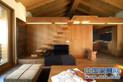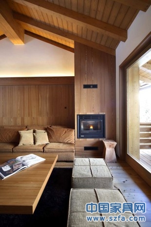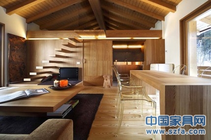 你即將進(jìn)入一個全部由木材建造的地方,從地板、天花板甚至是家具,所有的一切都為木質(zhì),這種獨特的細(xì)節(jié)將這個公寓裝點得無比迷人、溫馨,讓人眼前一亮。這是一棟能讓你聯(lián)想到滑雪度假村的公寓。