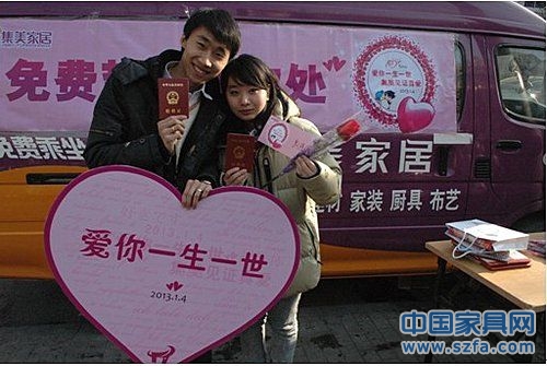 選擇在2013年1月4日這一天登記結(jié)婚的情侶們是非常幸運的,在享受了貼心服務之后,還可以在情人節(jié)的時候領取到由集美家居提供的價值5000元的家具建材置家券和價值1000元的家居禮包卡。其他朋友們也不用太羨慕,除了這一天登記的情侶們,集美家居還有更大的驚喜要送給全北京的有情人:1月4日到2月14日之間,關注集美家居官方新浪微博,上傳情侶合影,就有機會贏得包括價值5000元的奢華(奢華裝修效果圖)鉆戒在內(nèi)的多種好禮,以及100個高級定制的情侶馬克杯全城放送。