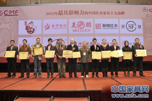 鴻發(fā)家具(右二)斬獲“2012最具影響力的中國(guó)紅木家具十大品牌” 鴻發(fā)家具(右二)斬獲“2012最具影響力的中國(guó)紅木家具十大品牌”