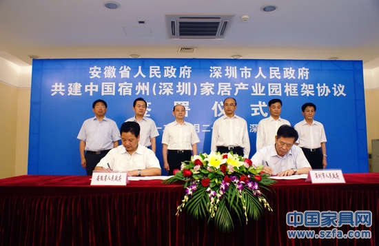 8月22日下午,安徽省政府與深圳市政府共建中國(guó)宿州(深圳)家居產(chǎn)業(yè)園框架協(xié)議簽署儀式在深圳市舉行,安徽省副省長(zhǎng)黃海嵩、深圳市市長(zhǎng)許勤出席并致辭,深圳市、宿州市和省有關(guān)部門負(fù)責(zé)同志參加協(xié)議簽署儀式。原中國(guó)華東家居產(chǎn)業(yè)基地更名為中國(guó)宿州·深圳家居產(chǎn)業(yè)園。
