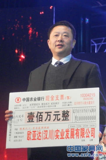 為發(fā)揚光彩精神,積極捐款捐資,支持“三農(nóng)”發(fā)展,爭做“愛心企業(yè)”,創(chuàng)建美好家園,漢川市委、市政府向廣大工商業(yè)者、企業(yè)家及社會各界發(fā)出捐款倡議,并于2012年12月28日晚,在漢川影劇院隆重舉辦了“情系漢川·清潔家園”大型募捐活動,220家企業(yè)共捐款3723.68萬元?! ≡诖舜文季杌顒又校錆h歐亞達集團作為武漢民營企業(yè)的杰出代表捐出100萬元善款。并將這100萬元善款用于農(nóng)村環(huán)衛(wèi)基礎(chǔ)設(shè)施建設(shè),將城市環(huán)衛(wèi)模式向農(nóng)村移植,讓漢川的農(nóng)村地區(qū)水更清、園更美、村莊更靚麗。