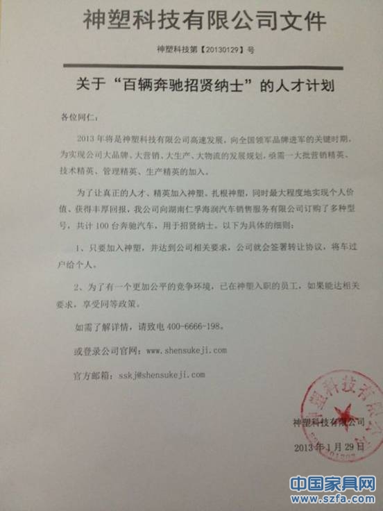 “我們斥資數(shù)千萬的百輛奔馳計劃,的的確確是為了吸引人才。因為 2013 年是神塑向全國領(lǐng)軍品牌高速進發(fā)的關(guān)鍵階段。當然,跟我們的發(fā)展目標相匹配的是‘神速’的人才跟進。”神塑一位高層人士告訴記者。
