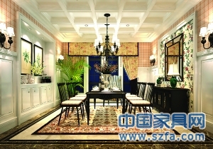 美式家具用材多為實(shí)木,涂飾常采取做舊處理。美式家居非常重視裝飾,如風(fēng)鈴草、麥?zhǔn)彤Y形裝飾等。