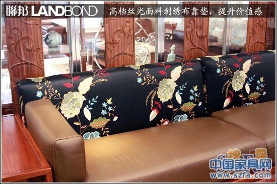 黑色的絲光布上,立體地刺繡著繁華盛開的圖像,多種鮮艷的色彩搭配黑色,更給人尊貴奢華的設(shè)計感,高端奢華的選料從用材上提升沙發(fā)的價值感。