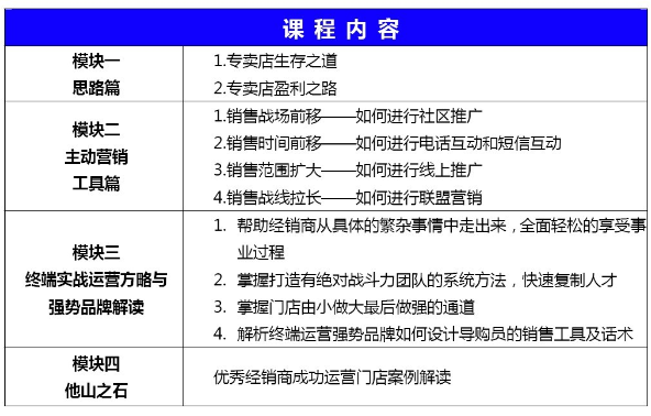 課程驚喜: 課程將為企業(yè)帶來現(xiàn)金流的快速增長; 受訓(xùn)學(xué)員學(xué)院專程專案免費(fèi)輔導(dǎo)。