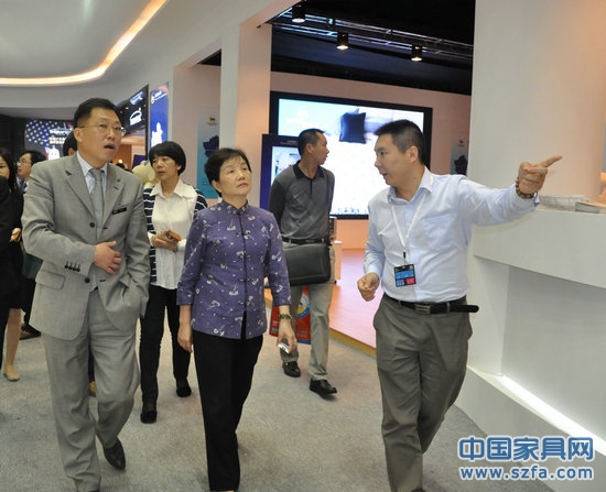 2013年3月21日,深圳國際家具展第三天,深圳市政協(xié)主席王穗明視察展會現(xiàn)場,并在深圳市家具行業(yè)協(xié)會執(zhí)行會長侯克鵬的陪同下視察了雅蘭、柏森、左右等深圳本土企業(yè)的展位,同時還走訪了金富通、南洋迪克、巨桑、雙葉等外地參展企業(yè),同時,還參觀了位于5號館內的高端定制家具,此館云集了來自世界各地的奢華進口家具品類,是此次深圳家具展上的亮點之一。