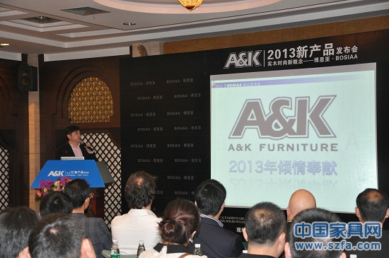 A&K沃克家居2013年新品發(fā)布會(huì)于2013年3月19日在深圳隆重舉行。本次發(fā)布會(huì),以“開時(shí)尚家居新風(fēng),領(lǐng)現(xiàn)代實(shí)木潮流”為主題,旨在宣揚(yáng)一種新的生活方式,讓每一個(gè)人都擁有一個(gè)健康、時(shí)尚、現(xiàn)代的新家居生活,這是中國家居業(yè)地又一個(gè)輝煌印記。