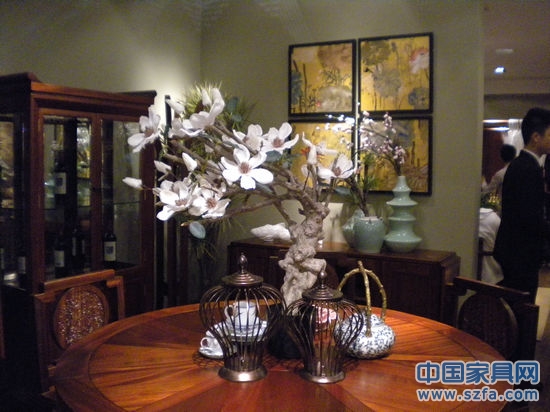 現(xiàn)在的人們生活在鋼筋水泥的城市,每天面對擁擠的交通,枯燥的電腦,缺少了與自然親近的時(shí)間。在這樣的情形下,對于室內(nèi)空間氛圍的營造更顯得尤為重要。大型的盆栽,小型的花藝,花鳥紋的燈具、畫品,無不帶給我們自然的感受,洗滌心靈,對話靈魂。實(shí)木優(yōu)雅流暢的花紋為譜,鳥兒飛翔其中奏出一首輕快的春之歌。此類空間為內(nèi)心深處深藏中式文化情結(jié)又熱愛自然的人們帶來了精神與視覺上的饕餮大餐。