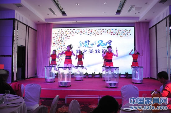 當(dāng)晚,夢之美家具傾力打造了一場內(nèi)容豐富多彩、氛圍和諧溫暖的晚宴。夢之美員工自編自導(dǎo)的舞蹈“浪漫櫻花”動感十足,激情四射的水鼓舞迎來了觀眾的熱烈掌聲,生產(chǎn)一線的李建中老師傅帶來了數(shù)來寶,最后的壓軸大戲激光舞更是將晚會推向了高潮。整臺晚會充滿了濃濃的人情味,使在場的經(jīng)銷商朋友有一種回家的親切感。