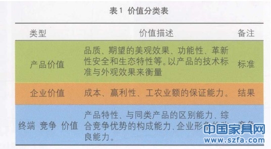 價值不僅指產品的價值,還包括企業(yè)的價值和終端競爭價值。(見表1)