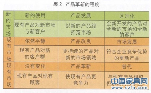 企業(yè)在拓展市場(chǎng)或產(chǎn)品更新時(shí)切忌全盤(pán)否定原有產(chǎn)品系列而大幅度跳躍,我們主張漸變型的持續(xù)改良與發(fā)展,革新而不是徹底的革命。產(chǎn)品革新的程度有許多層級(jí),見(jiàn)表2。