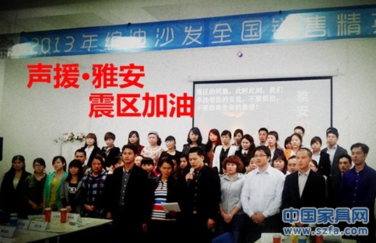 由于4月20日四川雅安7.0級(jí)地震發(fā)生,身處桃花島的學(xué)員們并沒有與世隔絕,馬上組織起來,發(fā)起聲援雅安震區(qū)災(zāi)民的活動(dòng),繽迪沙發(fā)董事長黃國斌鼓勵(lì)雅安人民要加油,不要放棄希望。