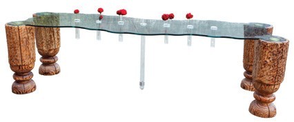 展品介紹:這件來自澳珀的作品的設(shè)計概念為:這個系列是根據(jù)高低凳子的想法演變出來,將杉木寬松速長的肌理,變得粗獷而抽象。是水紋、漣漪、浩浩江湖……是山脈、峻嶺、群山起伏……是念珠、圣書,人生長短……是喝茶的桌面,是獨思冥想的臺面,是會面聊天的場面…… 是自然,是傳統(tǒng),是當(dāng)下還是時尚……