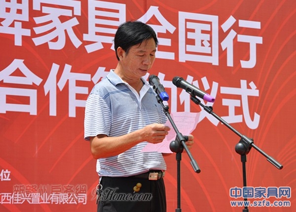 上午10點30分,“中國南康品牌家具全國行”百家戰(zhàn)略聯(lián)盟合作簽約儀式在中心市場隆重舉行,佳興置業(yè)有限公司總經(jīng)理、南康家具產(chǎn)業(yè)促進局副局長以及江西省家具協(xié)會家居商場聯(lián)合會領(lǐng)導(dǎo)發(fā)表了重要致辭。